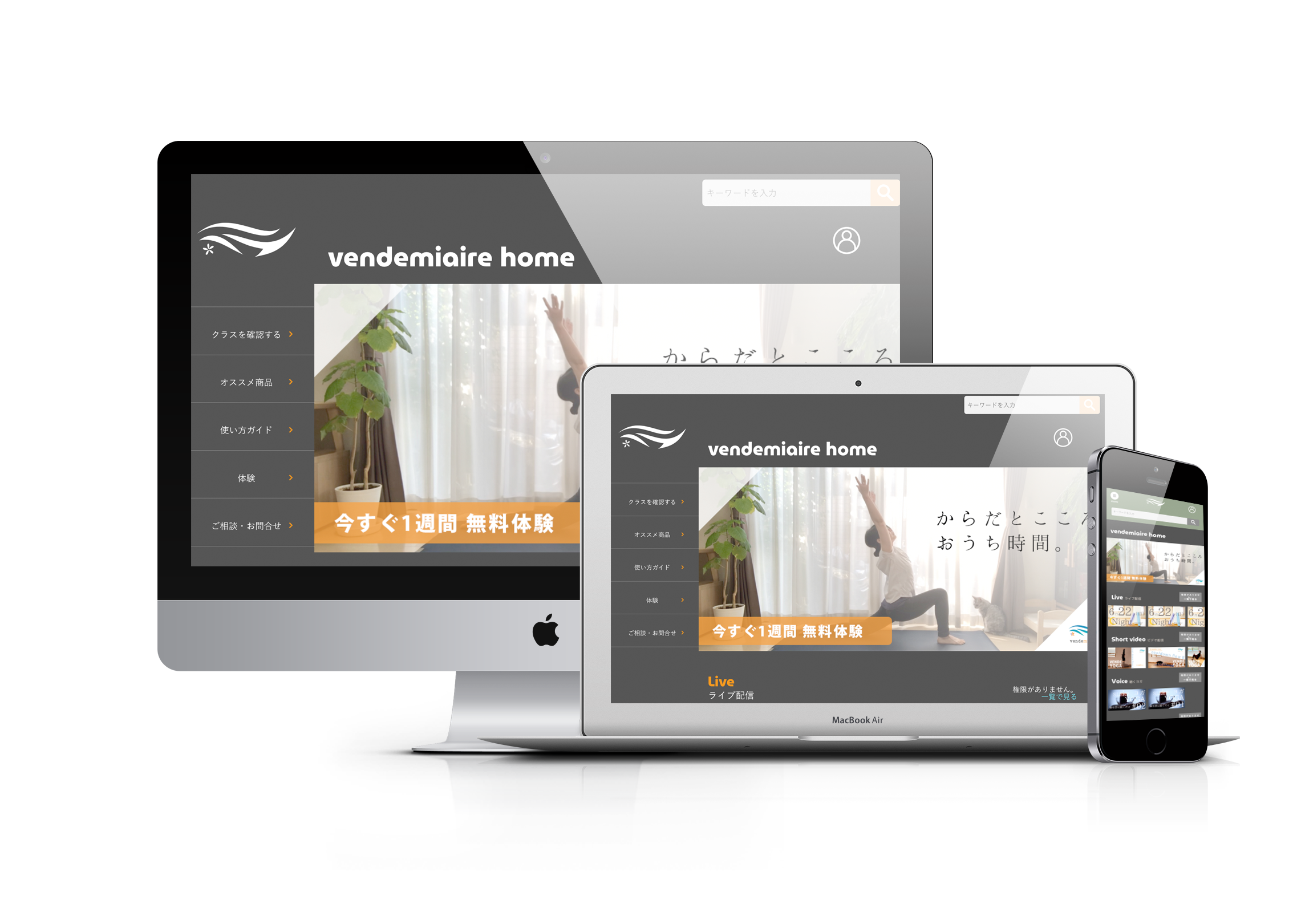 スマートフォンやタブレット、パソコンがあれば、時間や場所を選ぶことなく、好きなだけヨガをお楽しみいただけます。